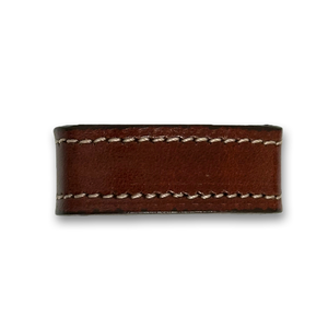 Close-up of brown leather texture, showing natural grain patterns and fine lines with a subtle sheen.