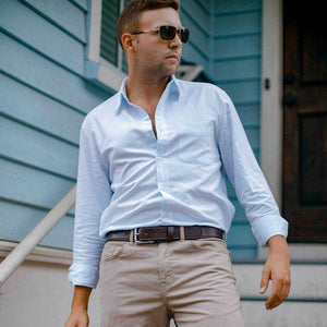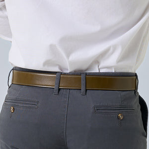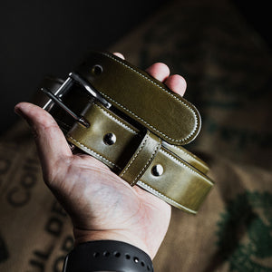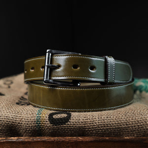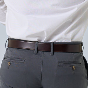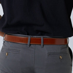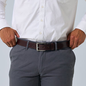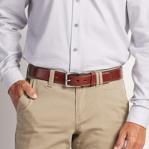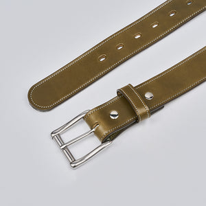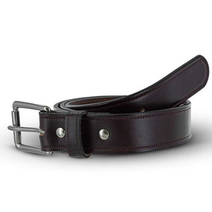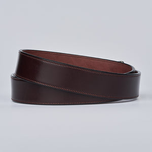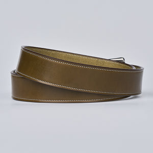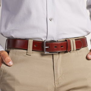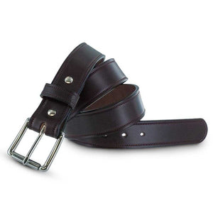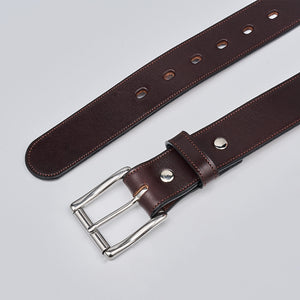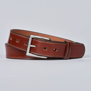 Brown English bridle full grain leather belt with stainless steel buckle accompanied with a single needle stitching