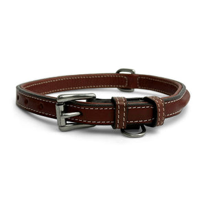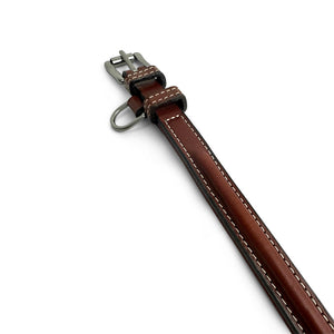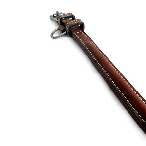 Close-up of brown leather texture, showing natural grain patterns and fine lines with a subtle sheen.