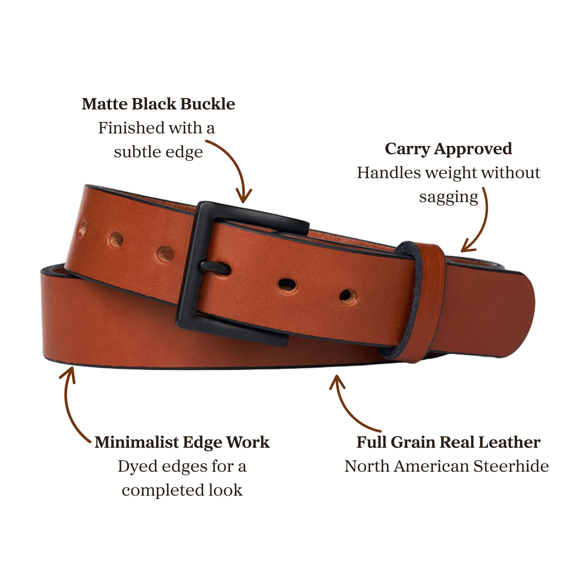 The solid full-grain leather is sliced right from the hide and handcrafted resulting in a belt that will probably be handed down to your kids. You won't find a better belt construction.