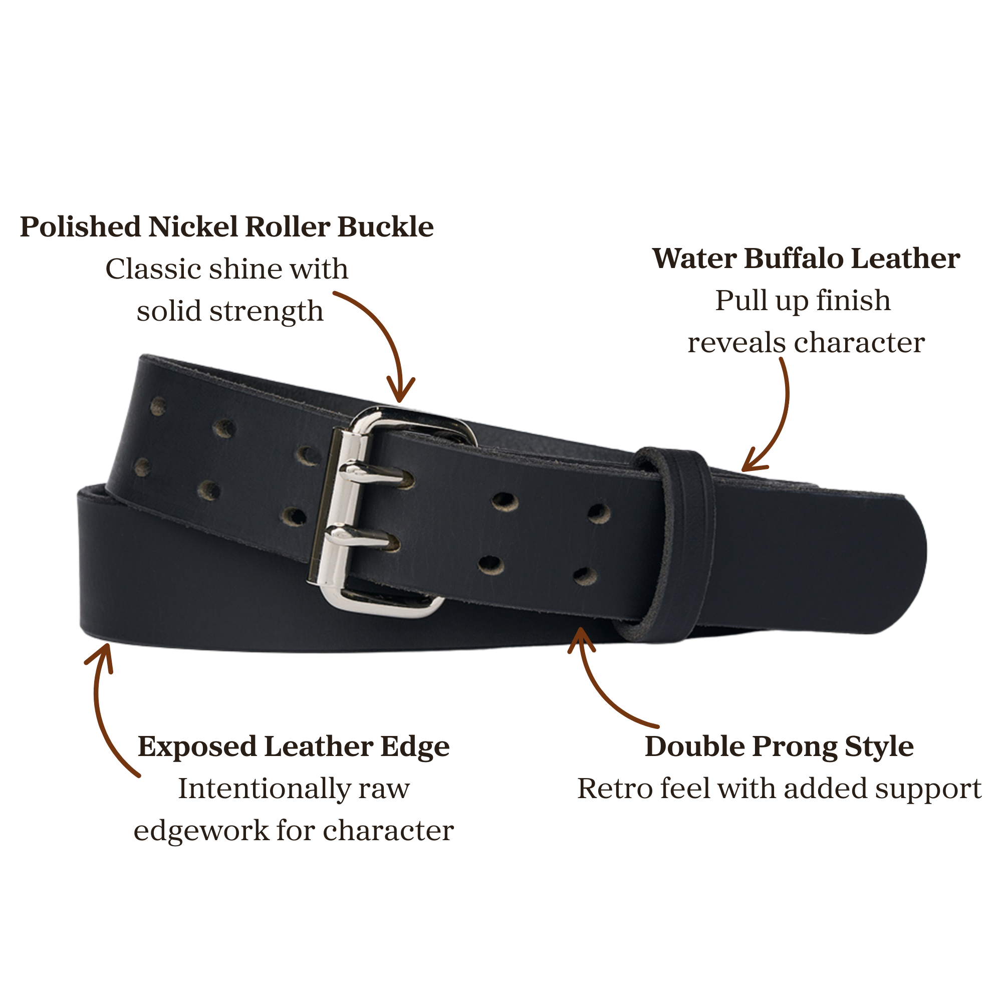 The rugged double prong roller buckle adds a great retro look and is super durable. It easily cinches down as snug as you like.