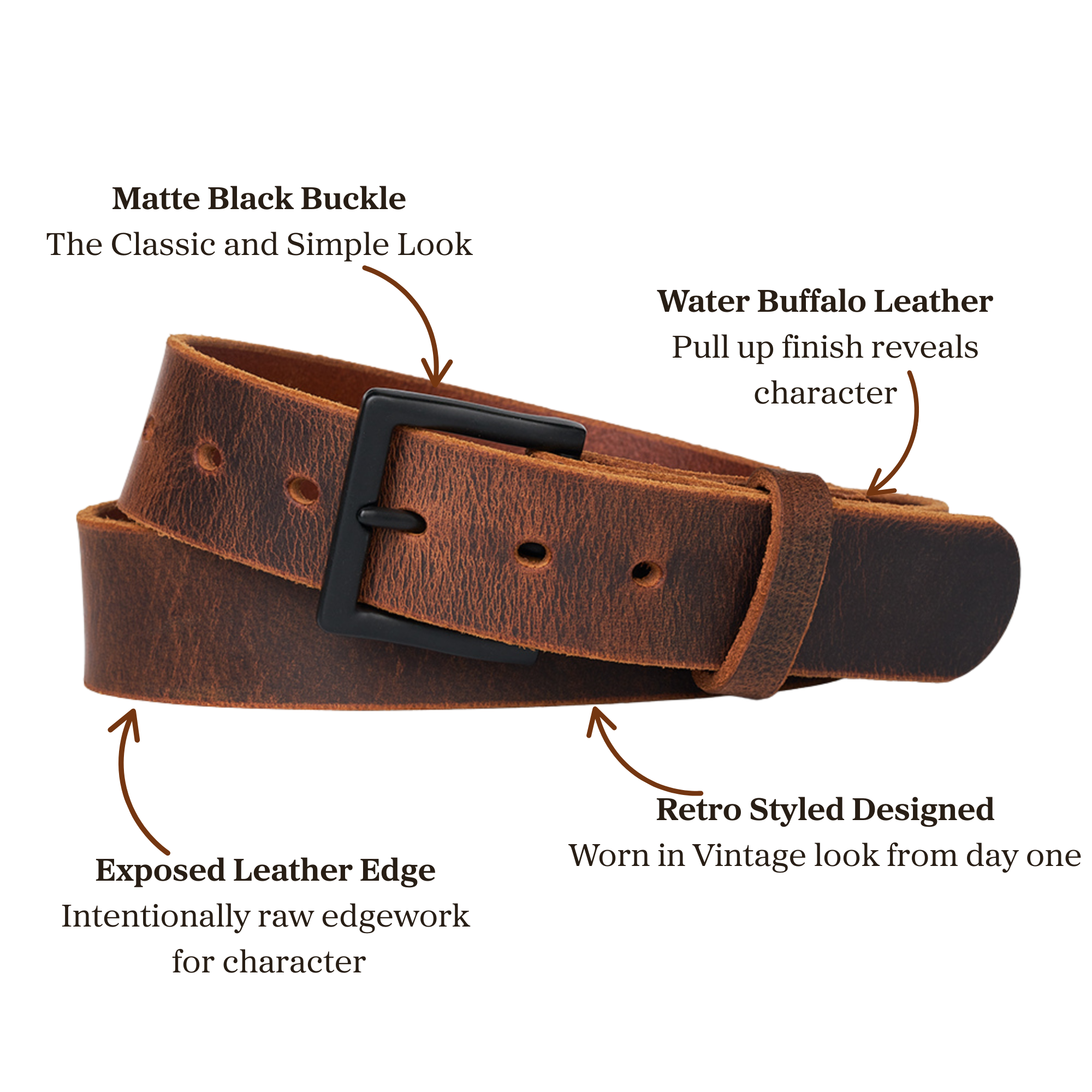 The classic retro look of this belt takes you right back to the 1970s. Raw and unfinished, the more you wear this belt the better it looks.