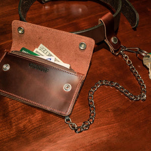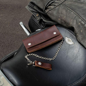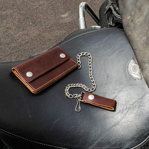 Hanks Biker Chain wallets keep all your cash and cards secure and close by. Made from extra-tough, rugged leather, these wallets will last through decades of heavy use.
