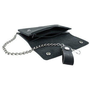 The sturdy 13" chain with an attached belt loop secures your wallet to your person, so loss or theft is highly unlikely. Two extra heavy-duty snap closures keep your wallet shut, ensuring your valuables stay put.