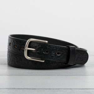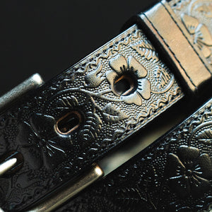 The beautiful embossed floral design sets this belt apart from the plain jane belts. Just enough flair without being gaudy.