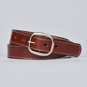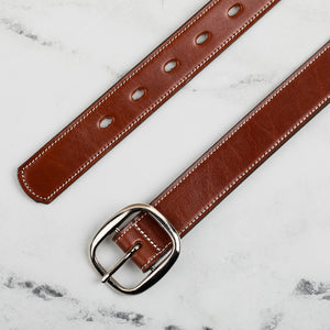 The standout feature of this belt is the beautifully designed center bar buckle, stitched on, to provide a stylish and modern touch. Crafted in the USA and made from the finest vegetable-tanned leather, this belt offers a luxurious feel and long-lasting quality.