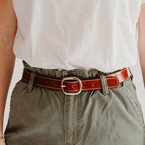 Introducing the Eloise, our women's premium quality belt to enhance your wardrobe. This was made to have a versatile design, perfect for dressing up or down, this belt compliments jeans, slacks, or skirts with ease.