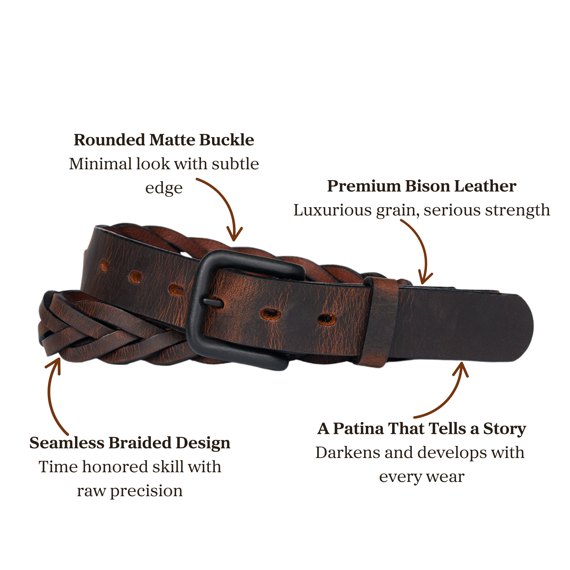 Introducing The Rockford, a mystery braided leather belt carefully crafted from rugged Bison leather.